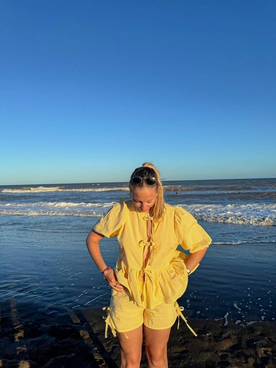 Short de cuadrillé de algodón con lazos laterales. De corte suelto y liviano, combina un aire romántico con la frescura ideal para los días de verano